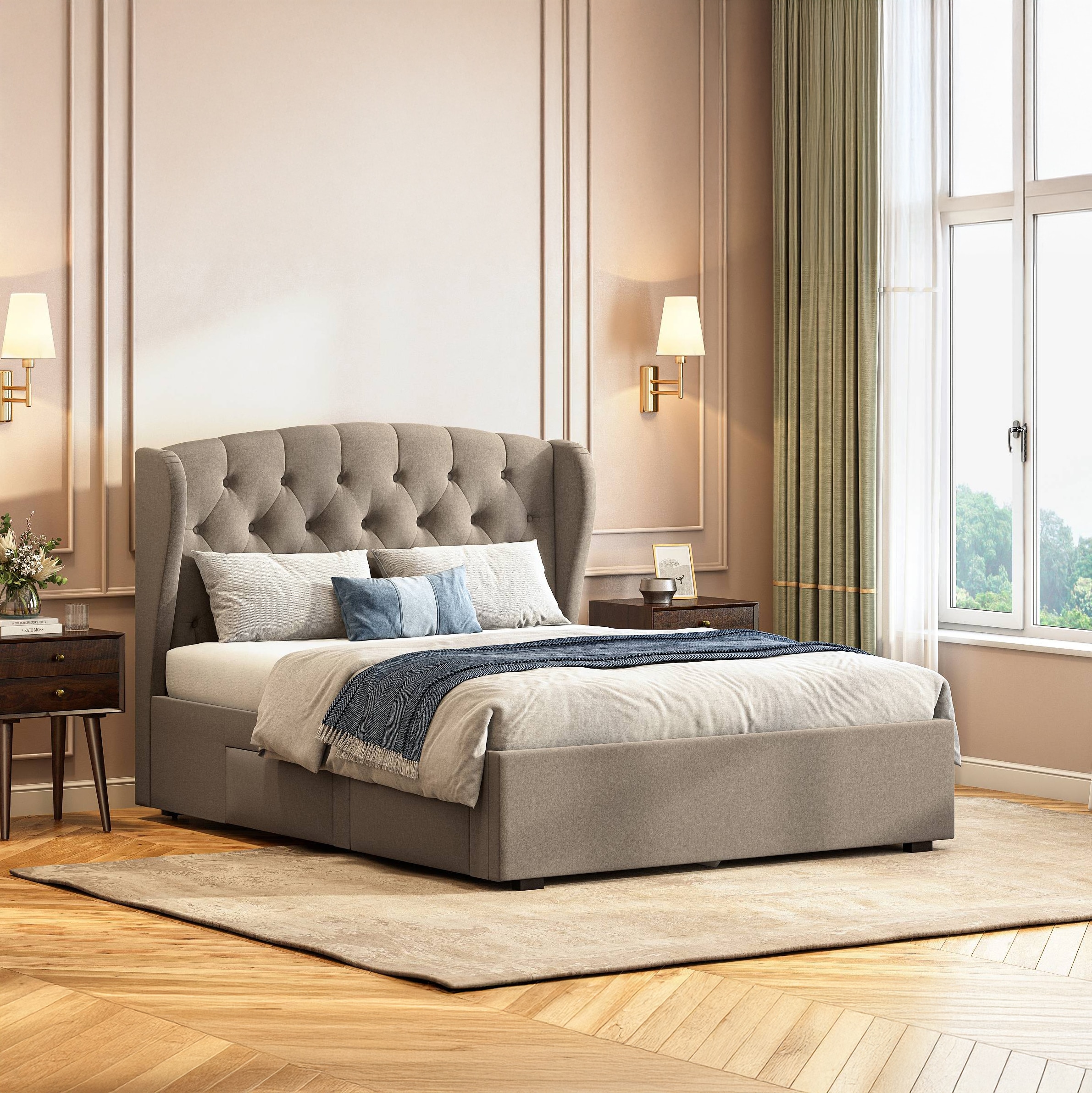 Upholstered beds add a luxurious touch with their padded headboards and soft fabric. Upholstery materials include velvet, linen, and faux leather, each offering a different texture and appearance. These beds are particularly comfortable for sitting up in bed, making them a great choice for those who enjoy reading or watching TV. Some of these beds also come as queen size bed with storage. However, they do require regular maintenance to keep the fabric clean and in good condition.